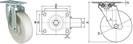 Ideal for heavy-duty applications such as trolleys, lifting equipment & automatic gates. Good resistance to abraision, petroleum and chemical agents. Double ball race swivel action. Zinc plated pressed steel housing with swivel plate fitting.